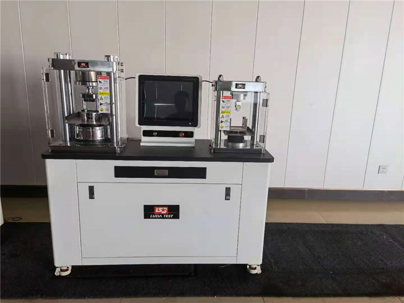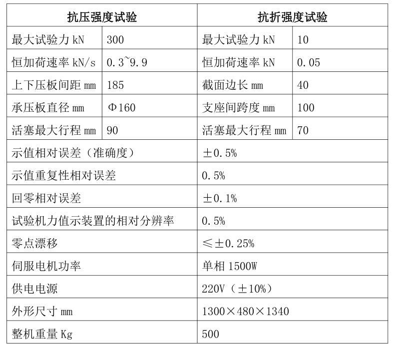 1、结构:试验机由油源、主机架、液压控制系统,传感器及PC机控制测力系统控制器组成。抗压部分采用四根立柱与台面板连在一起,工作油缸安放在台面板上。抗折部分也采用两根立柱将上梁与台面板连在一起,抗压轮辐传感器安装于上梁底部,工作油缸安放在台面板上,与抗压部分一起构成试验机的主机架。工作油缸与工作活塞是精密偶件,在油缸的内壁上部嵌有复合密封圈来达到密封,这种结构可以使工作油缸与活塞之间的摩擦减少到最低限度,从而保证试验机的精度。采用径向柱塞高压油泵,由电机通过支架安装在试验机底部,整体安放于油箱上,工作平稳且躁声低。液压集成块上有数字微小流量阀,整体安装于油箱上方。传感器才用高精度轮辐传感器,安装于上横梁底部。PC机控制测力系统安放在主机侧边,电脑安装在抗折与抗压结构中部位置。