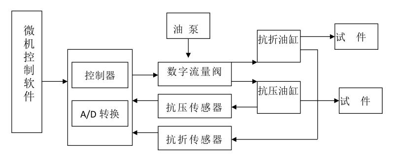 微机控制300KN恒加载试验机电液控制系统由以下部分构成:PC电脑一台,打印机一台,系统控制器及伺服液压控制系统.工作原理如下图