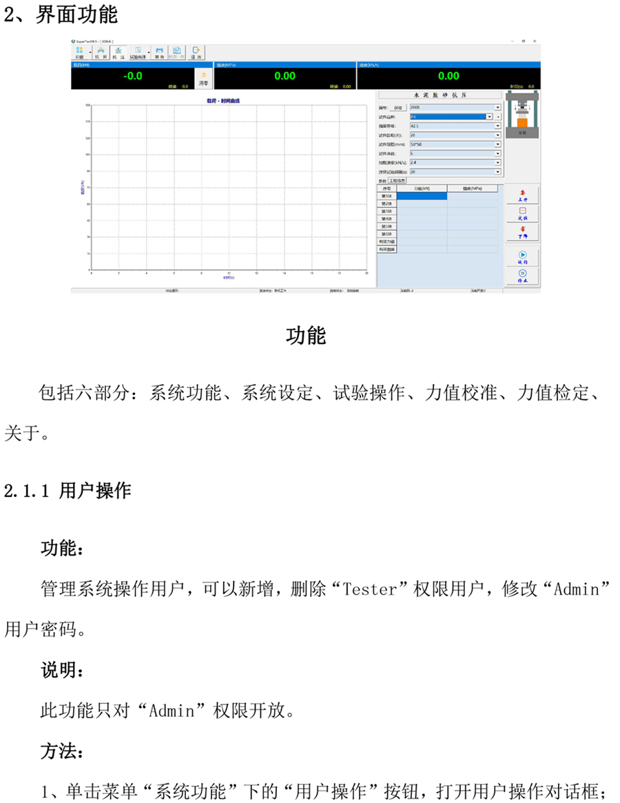 ● 载荷、强度、速度、载荷峰值、强度速度、加载曲线实时显示。
