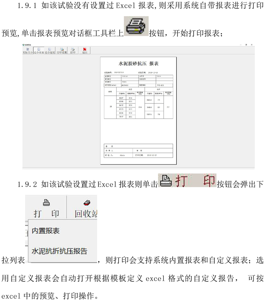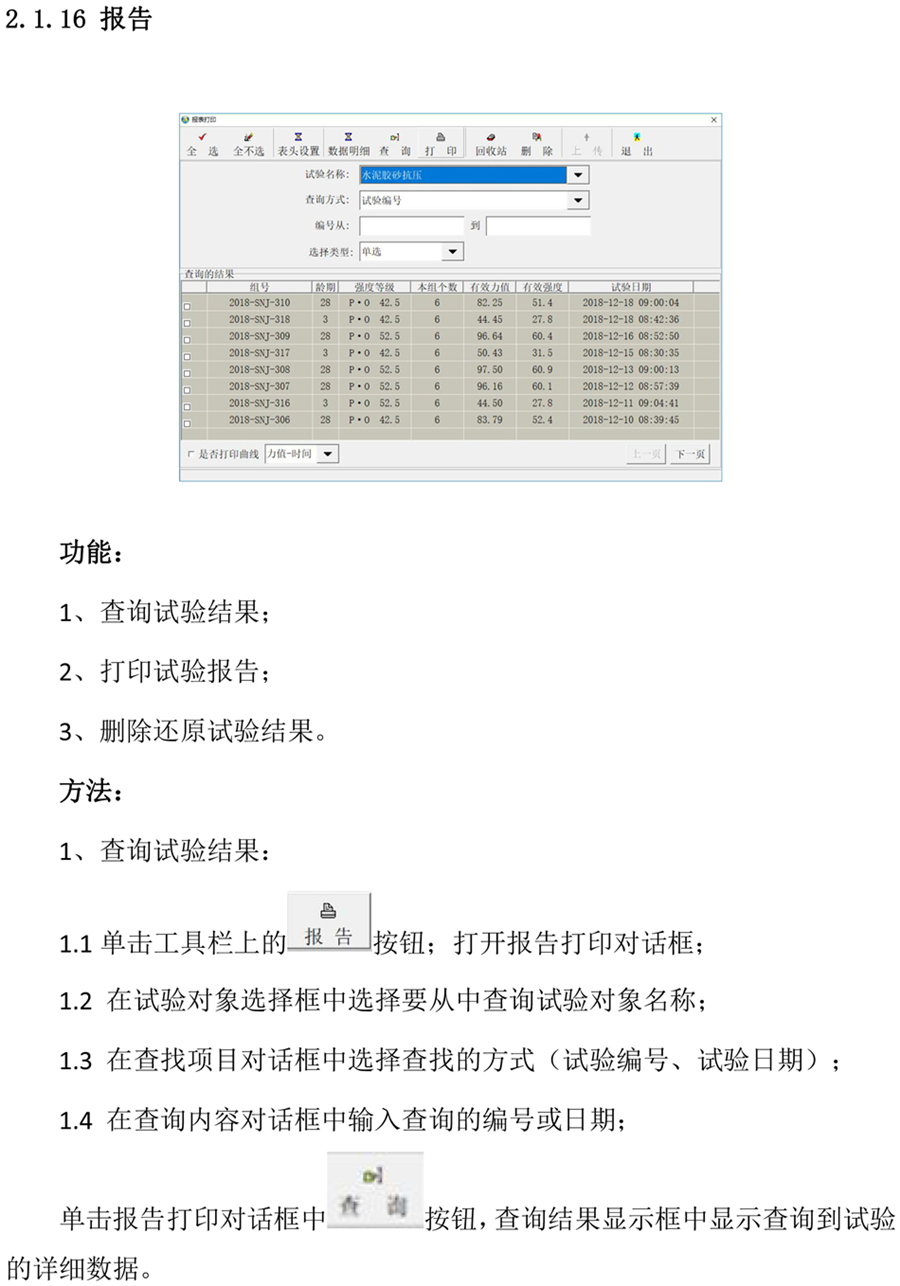● 设定并打印试验报告;
