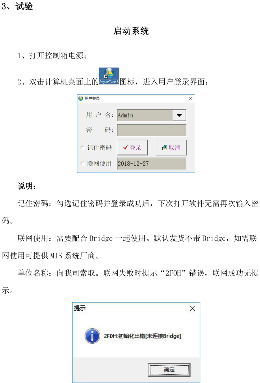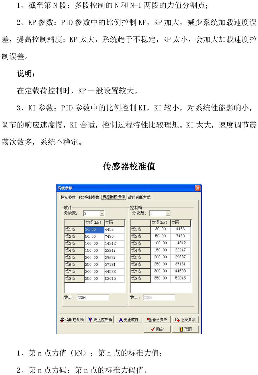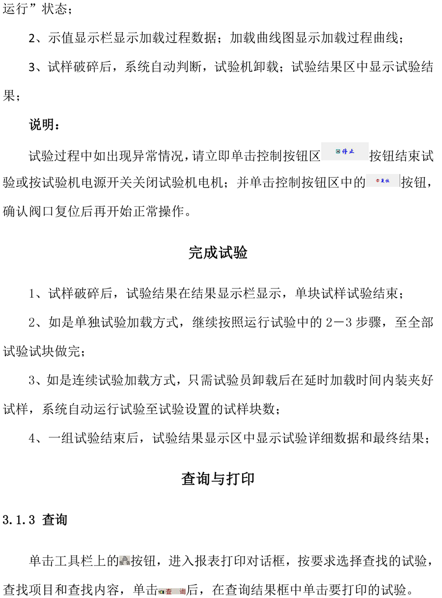 计算机和压力机的连线包括:压力机的单相电源线、抗折.抗压传感器线、计算机到控制箱的串口线及控制箱的输出线。将这些线的插头对号入座地插好。
